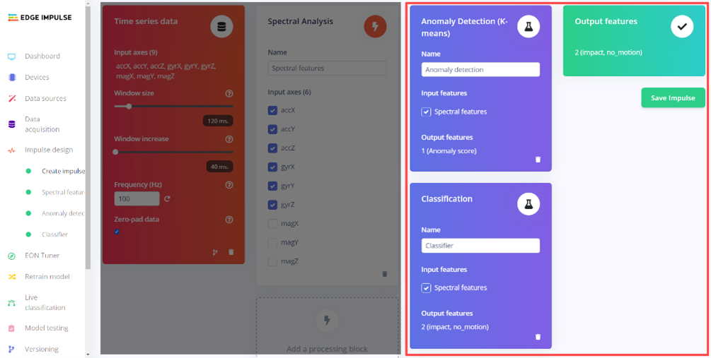 Im nächsten Teil unserer Edge Impulse-Beitragsreihe beschäftigen wir uns mit der Verwendung der Edge Impulse-Trainingspipeline zur Analyse der Spektralkomponenten der Rohdaten und zur Erzeugung von Merkmalen, Anomalieerkennung und Klassifikatoren.