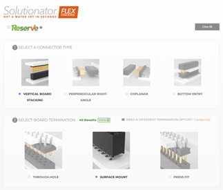 Abbildung 3: Der Solutionator führt Entwickler durch einen Auswahlprozess, um die optimale Option für Flex-Stacking-Steckverbinder zu finden.