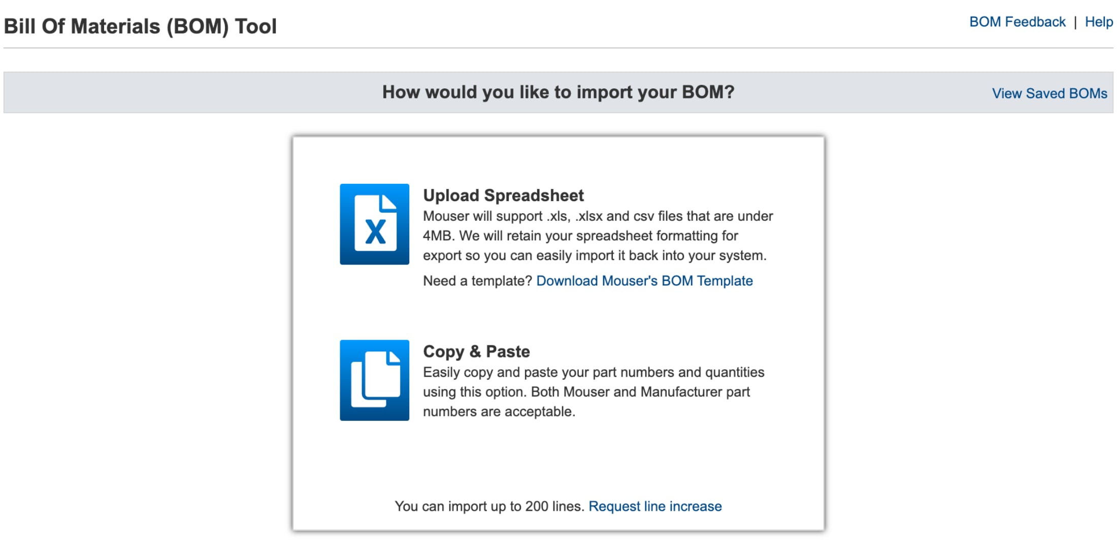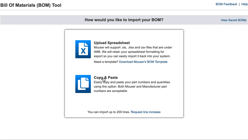 Mit dem BOM-Tool von Mouser können Sie Ihre Daten auf zwei Arten importieren: