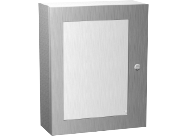 Hammond Manufacturing Eclipse Stainless Steel Wall-Mount Enclosures feature a window and are designed to enclose electrical and electronic equipment in wall-mount applications. These enclosures are suitable for applications where viewing component operation is necessary while maintaining protection ratings. Eclipse enclosures have hidden hinges and latching systems that make them suitable for any high-tech equipment installation. Hammond Manufacturing Eclipse Stainless Steel Wall-Mount Enclosures meet UL 508A Type 3R, 4, and 12 standards and offer a wide range of sizes that work for numerous applications.Specifications