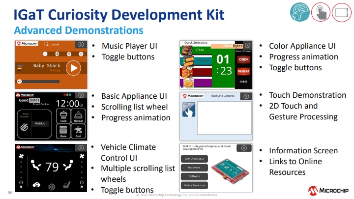 Die Microchip Technology SAM E51 Integrierte Grafik and Touch (IGaT) Curiosity Evaluation Kit ist eine Hardware-Plattform zur Evaluierung des SAME51J20A Mikrocontrollers. Das Kit integriert einen kompletten Touchscreen, TFT-Grafiken und eine Touch-Oberfläche in einer Single-Chip-Lösung. Es wird von der MPLAB ® X Integrated Development Umwelt (IDE) unterstützt. Das Kit bietet einen einfachen Zugriff zu den Funktionen des SAME51J20A, um das Bauelement in ein kundenspezifisches Design zu integrieren. Das Integrierte Grafik- und Touch Curiosity Evaluierungskit enthält einen Onboard-Debugger. Für die Programmierung des SAME51J20A-Bauelements sind keine externen Tools erforderlich.