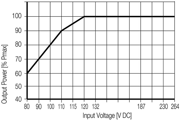 - Eingangsspannungsbereich: 80 VDC bis 370 VDC (Derating bei 120 VDC)