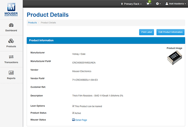 Die Lagerverwaltungs-Plattform von Mouser ist ein webbasiertes System, mit dem Unternehmen ihre Lagerbestände an elektronischen Bauteilen und Zubehör einfach verwalten und verfolgen können.